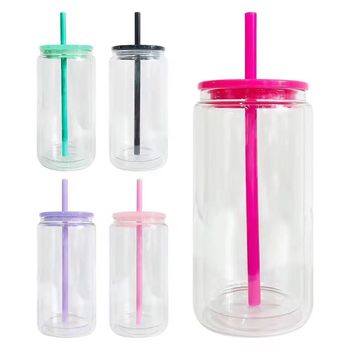 Vendita calda 16oz trasparente a doppia parete vetro a sublimazione involucro UV in plastica sfera di neve barattolo di vetro con pre-trapano foro tappi di colore coperchi